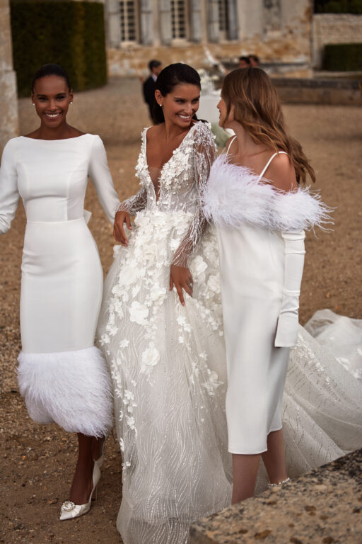 Zusätzlich bietet Milla Nova umfangreiche Individualisierungsmöglichkeiten: Ob ein veränderter Ausschnitt, die Wahl zwischen Ärmeln oder ärmellosen Designs, zusätzliche Spitze oder ein Schlitz im Rock – nahezu jedes Kleid kann nach Absprache und gegen Aufpreis personalisiert werden.