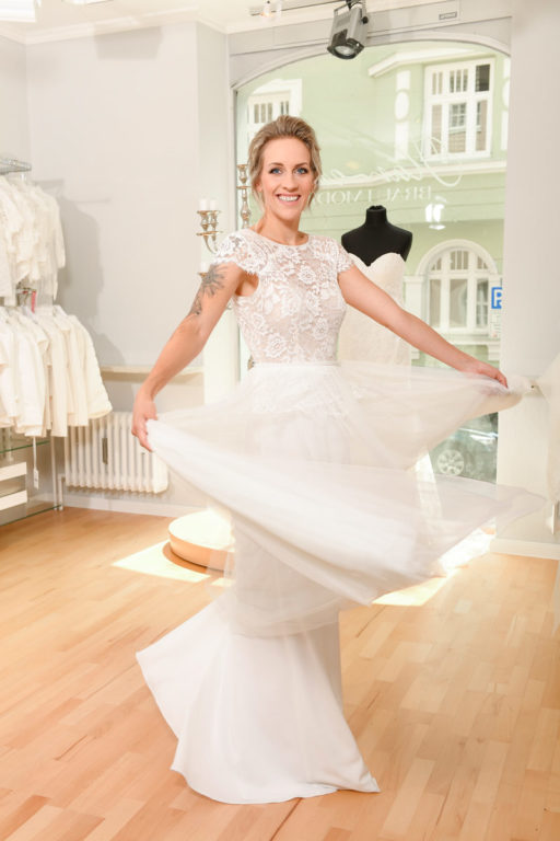 Der Besuch eines Brautstudios ist für jede zukünftige Braut ein besonderes Erlebnis. Ob gleich sie sich nur im kleinen Kreis unter Freunden, oder im ganz großen Stil das JA-Wort geben möchten. Mit der Frage „Was ziehe ich an“, sieht sich jede irgendwann einmal konfrontiert, so auch Melissa Hannawald, die am vergangenen Samstag mit ihrem Sven auch kirchlich den Bund fürs Leben schloss.